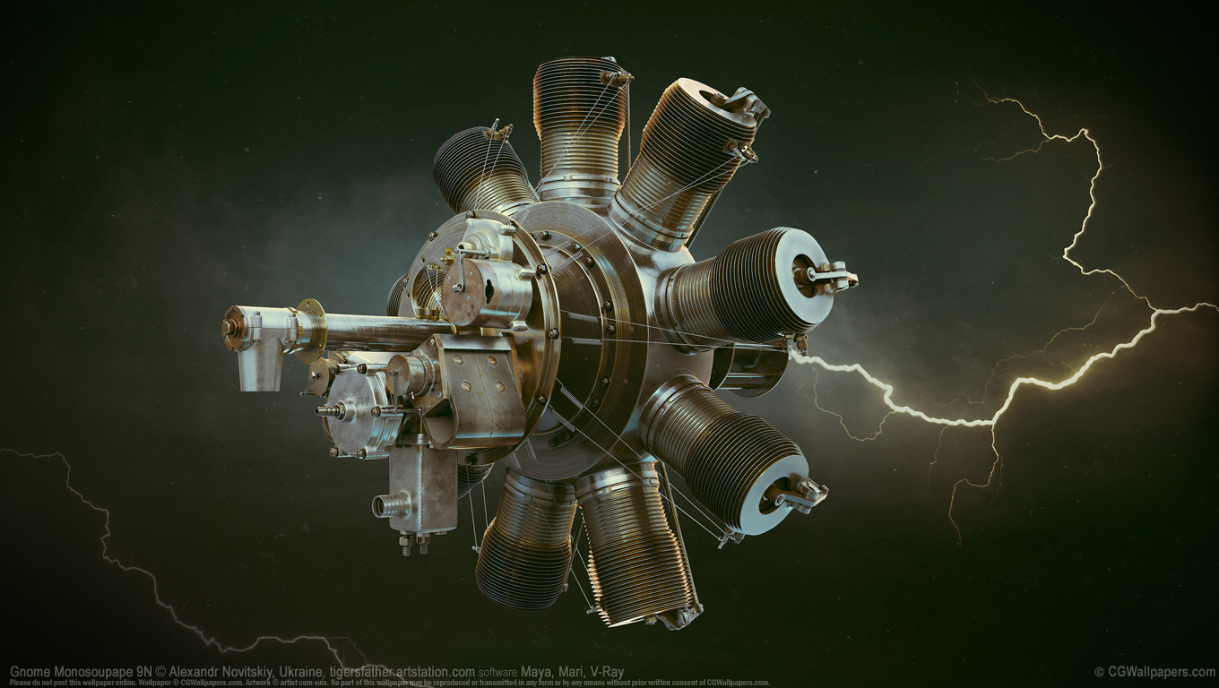 Gnome Monosoupape 9N © Alexandr Novitskiy, Ukraine software Maya, Mari, V-Ray