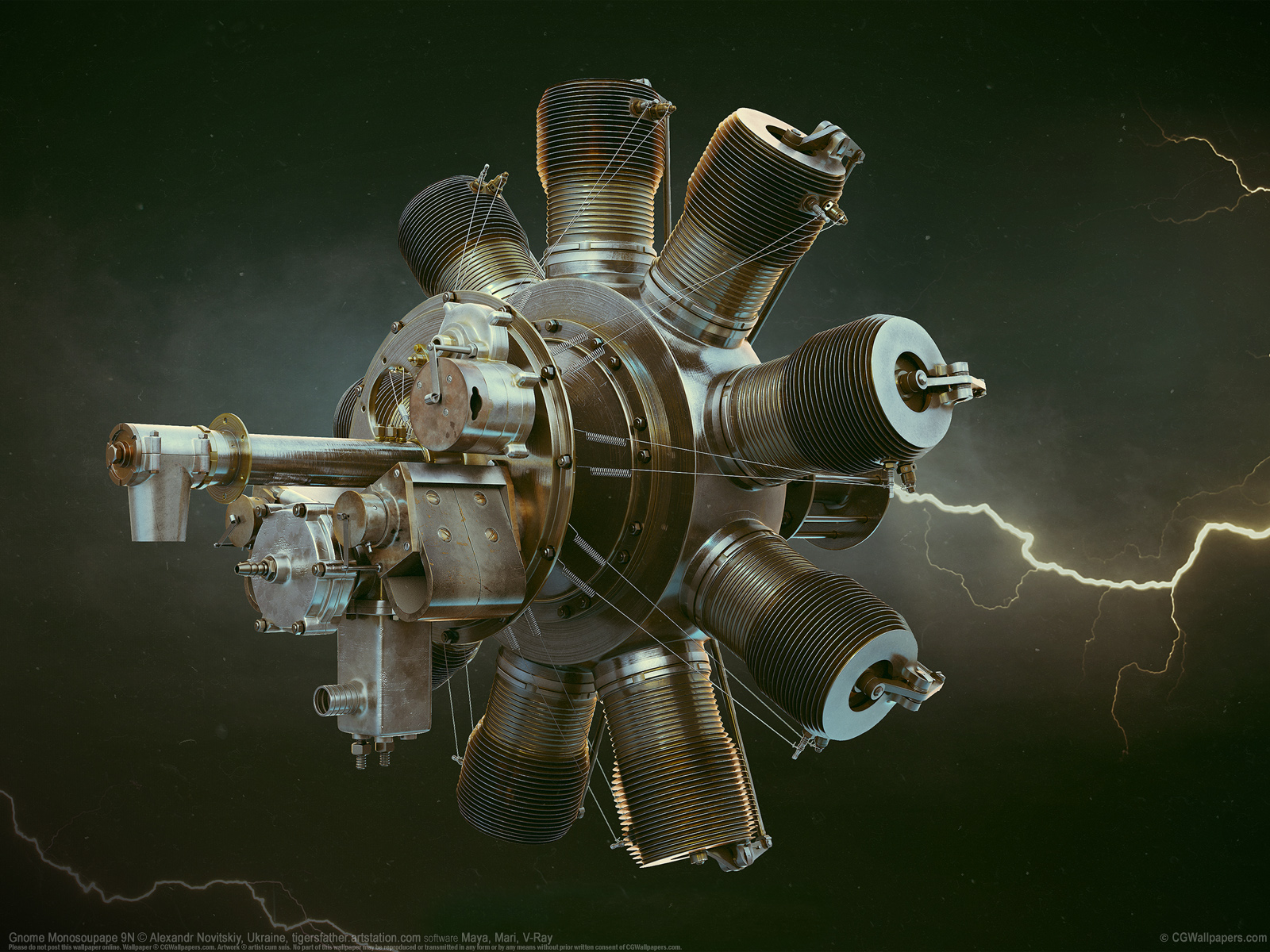 Gnome Monosoupape 9N © Alexandr Novitskiy, Ukraine software Maya, Mari, V-Ray