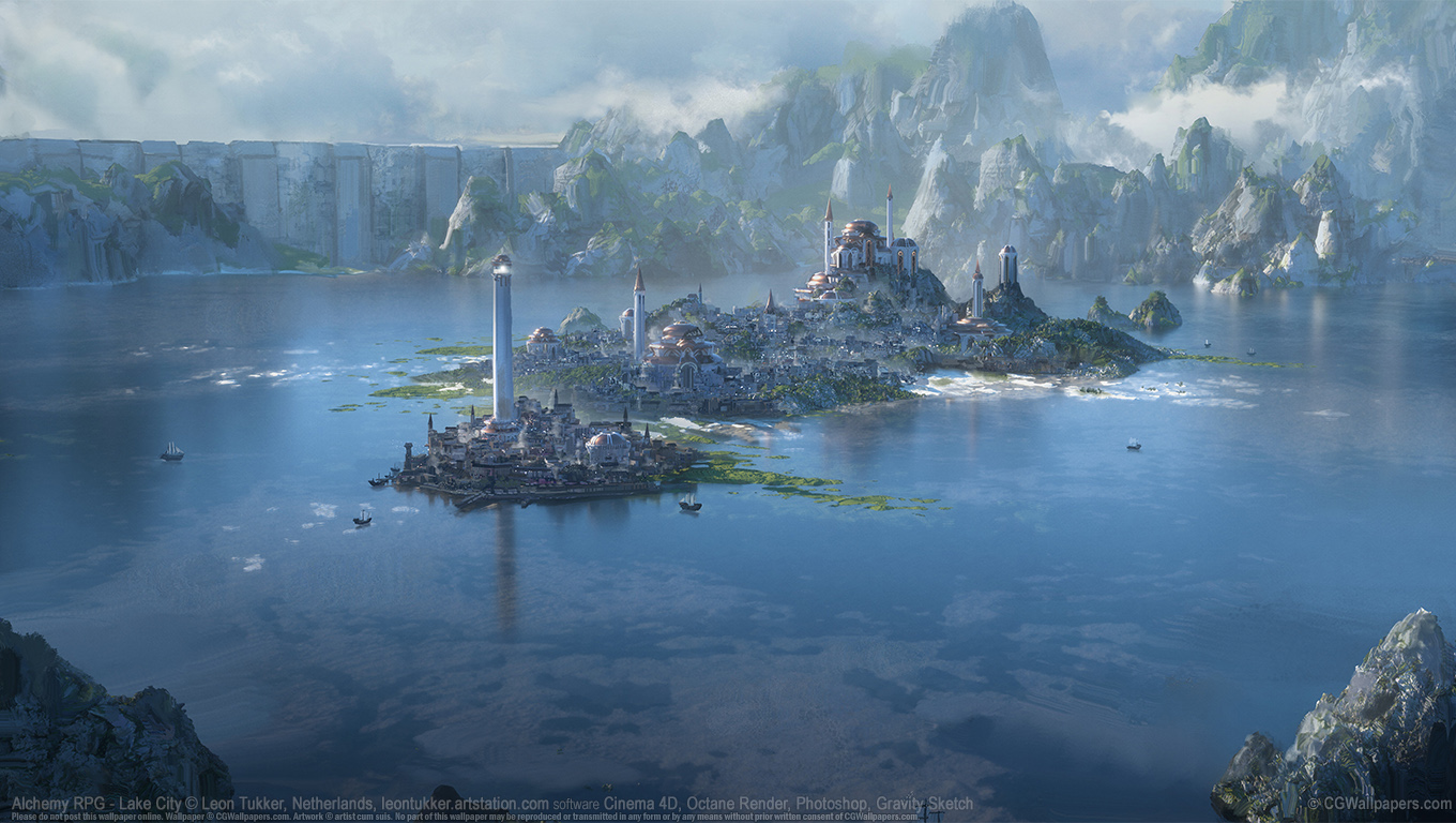 Alchemy RPG - Lake City © Leon Tukker, Netherlands software Octane Render, Cinema 4D, Photoshop, Gravity Sketch